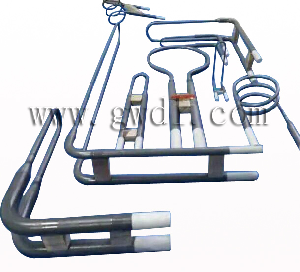 發(fā)熱元件采用高溫合金電阻絲(含鉬,爐絲表面溫度可達(dá)1400度)或硅碳棒為加熱元件。U型等直徑硅碳棒,硅碳棒是選用高純度a-SiC為主要原料制成的非金屬高溫電熱元件,它具有升溫快、熱效率高、壽命長、高溫下不易變形,安裝操作維修簡便、溫度可達(dá)1500度等特點。